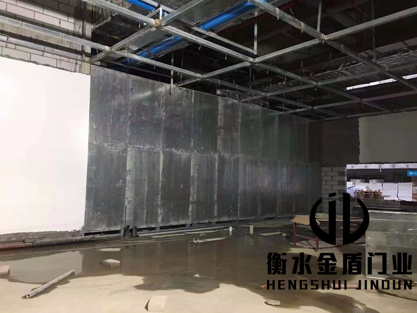 1.9mm泄压板+100mm轻钢龙骨(填充岩棉)+9mm防爆泄压板[双层 错缝安装]